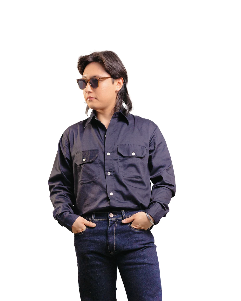 The Double Flap Pocket Shirt is crafted from a premium blend of polyester and cotton dobby fabric, offering both durability and a subtle textured finish. This stylish shirt features two front flap pockets with button closures, providing a practical and fashionable touch. The fabric blend ensures comfort and breathability, making it an ideal choice for all-day wear. With its classic collar design, this shirt seamlessly combines functionality with a sophisticated look, perfect for both casual and semi-formal occasions.